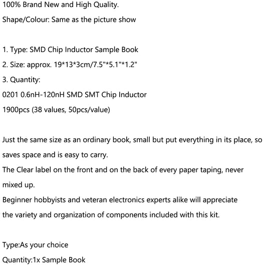 0201/1206/0402/0805 SMD Chip Inductance Assorted Kit 1Sample Book 1300pcs
