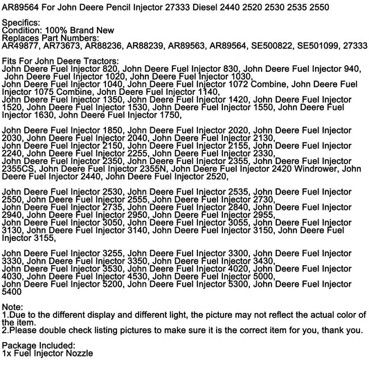 AR89564 For John Deere Pencil Injectors Tractor 27333 1520 1530 2020 2030, 1Pcs