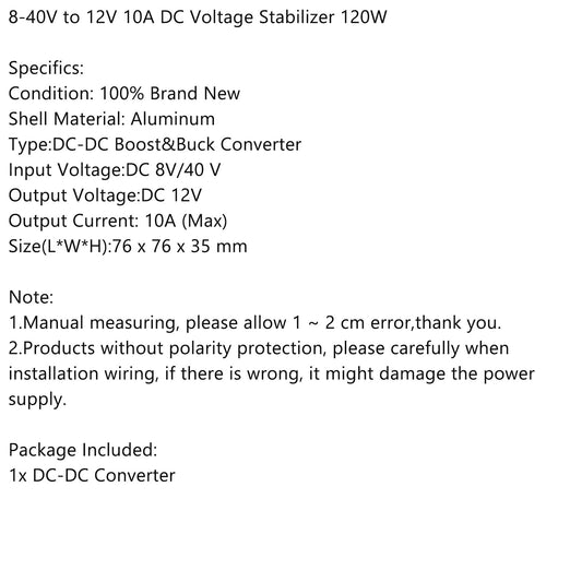 DC-DC Converter 8-40V to 12V 10A DC Voltage Stabilizer Car Power Supply Regulator Waterproof