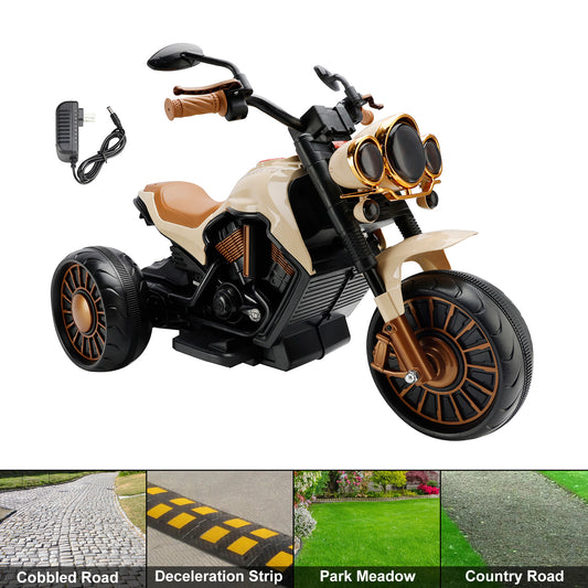 Kids Ride-On Motorcycle 3-Wheel Electric LED – Brown, 1–8 Years