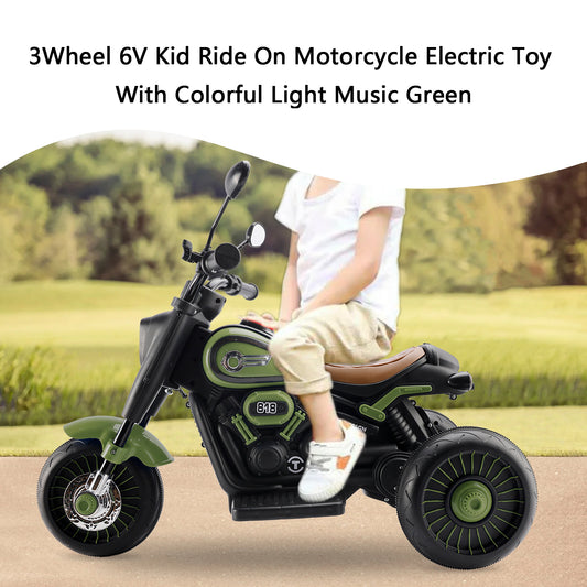 3-Wheel 6V Kids Ride-On Motorcycle with Music & Colorful Light – Green
