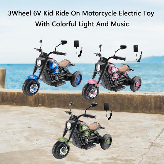 3Wheel 6V Kid Ride On Motorcycle Electric Toy With Colorful Light And Music