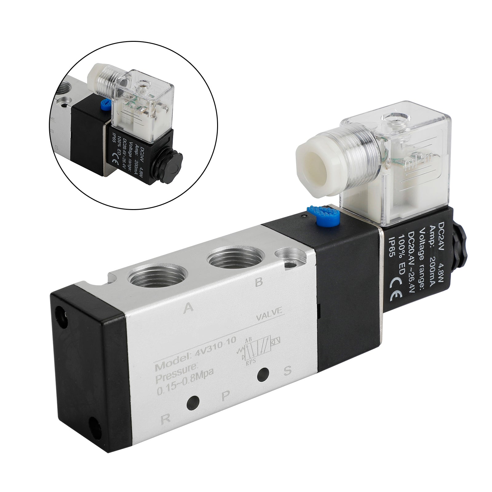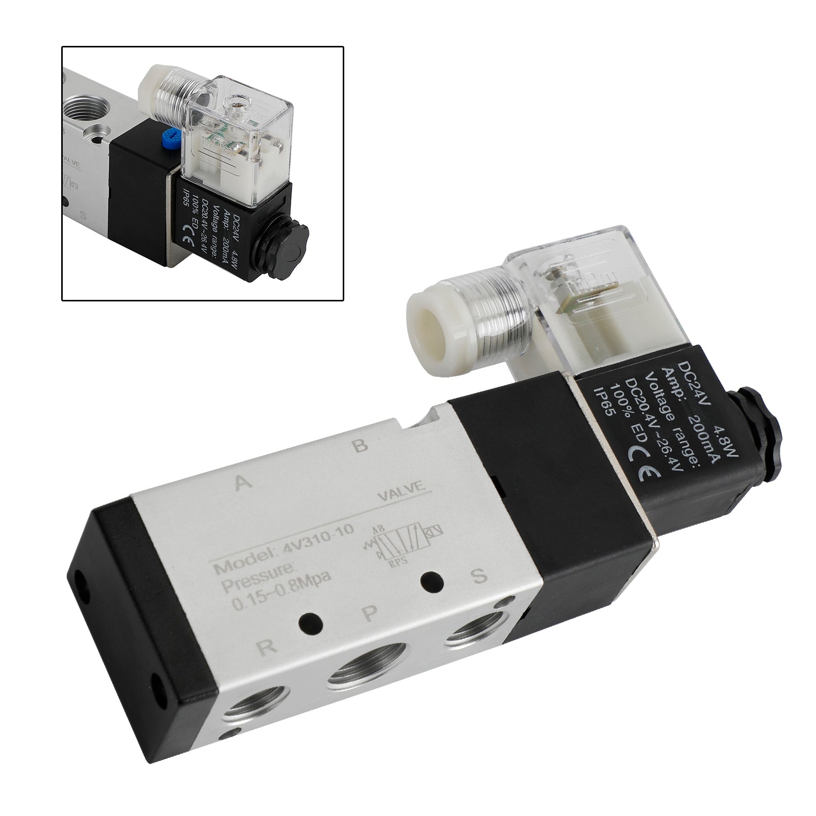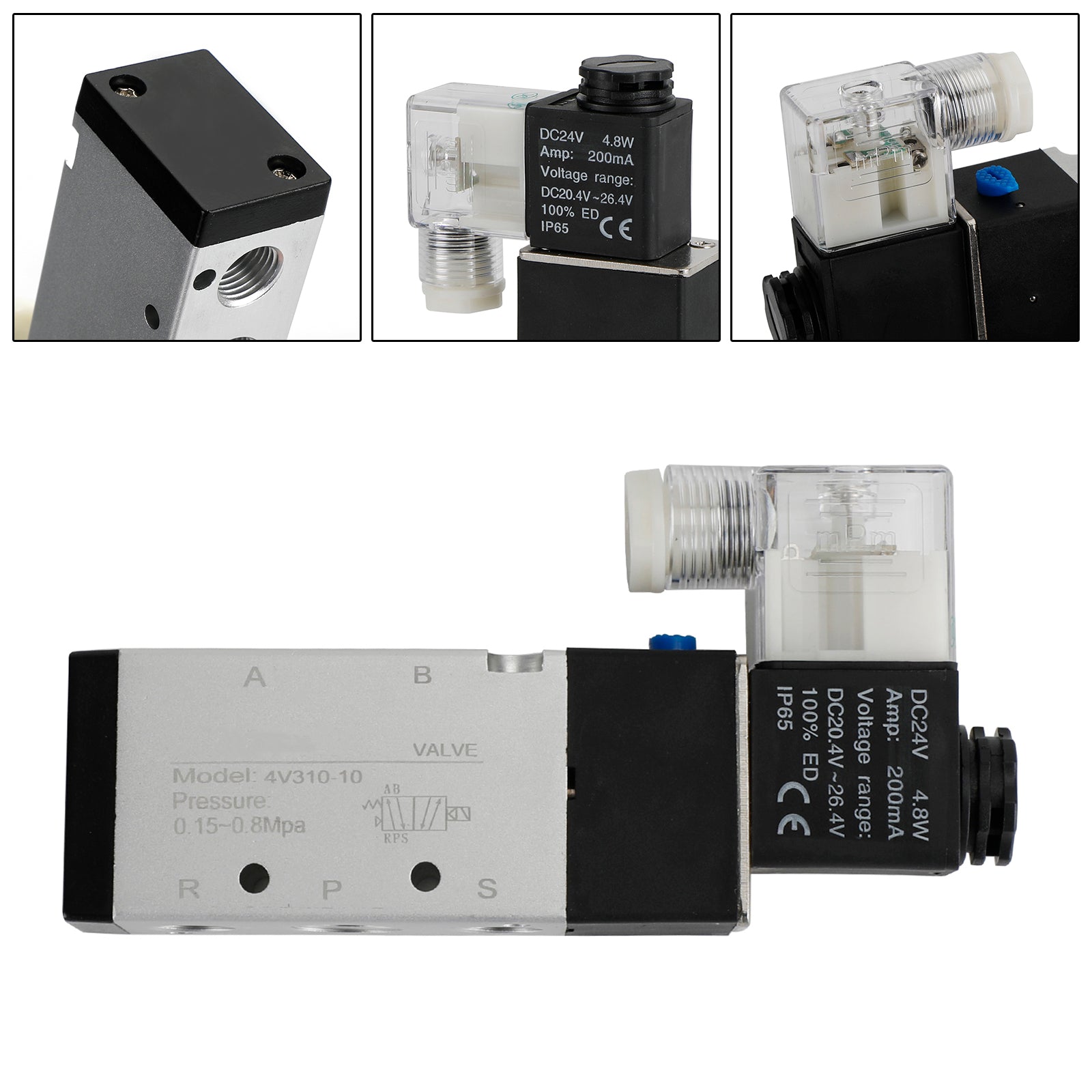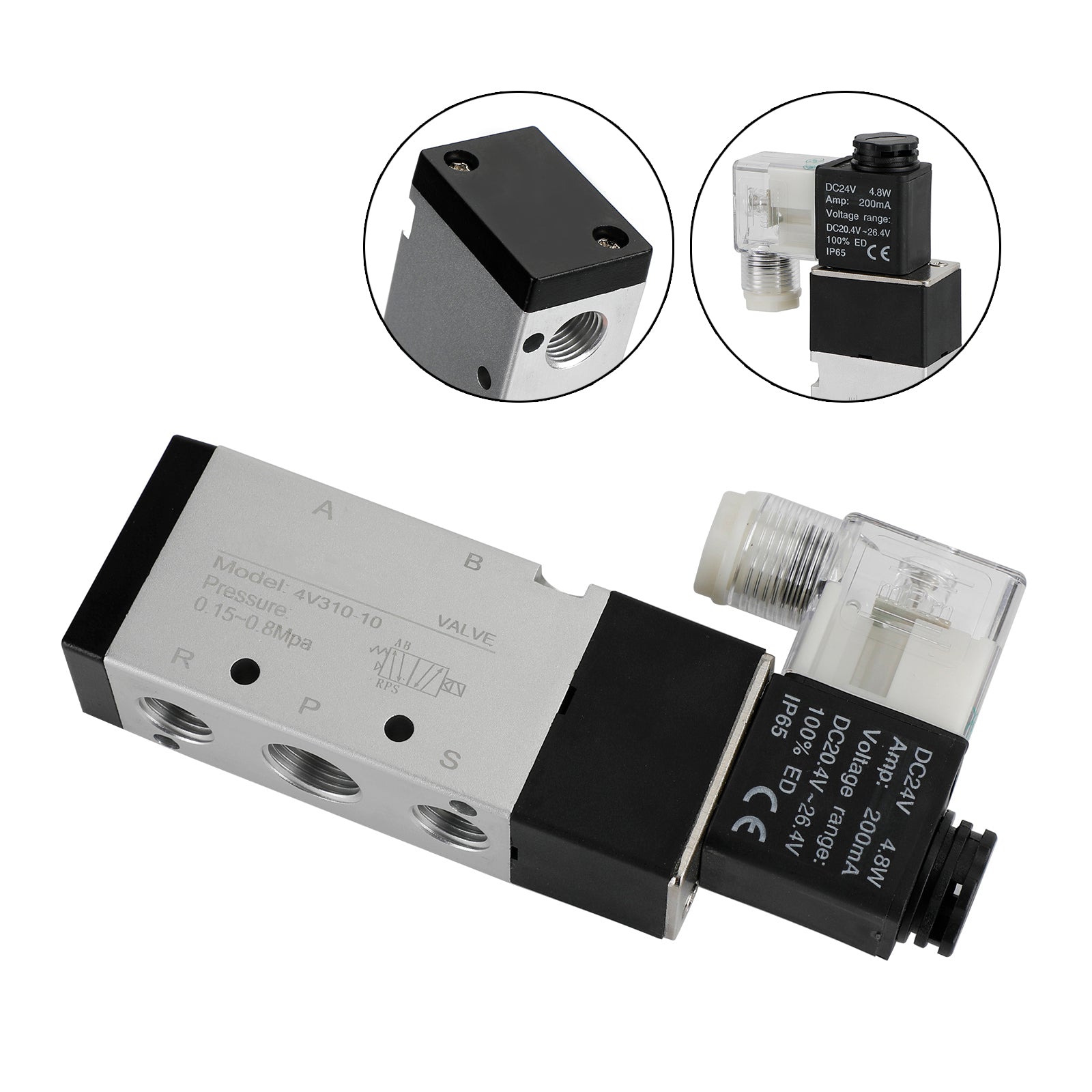 Pneumatic Electric Solenoid Air Valve 4V310-10 2 Position 5 Way PT 3/8", DC 24V