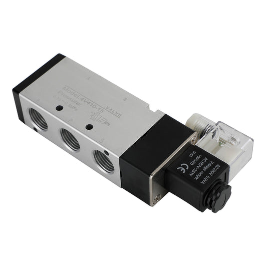 Pneumatic Electric Solenoid Air Valve 4V410-15 AC 220V 2 Position 5 Way PT 1/2"