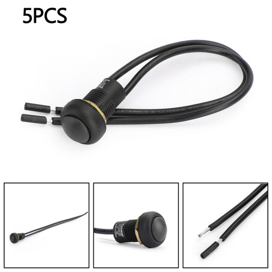 5pc Normally Open Momentary Self-resetting Push Button Reset Switch w/Wire Black