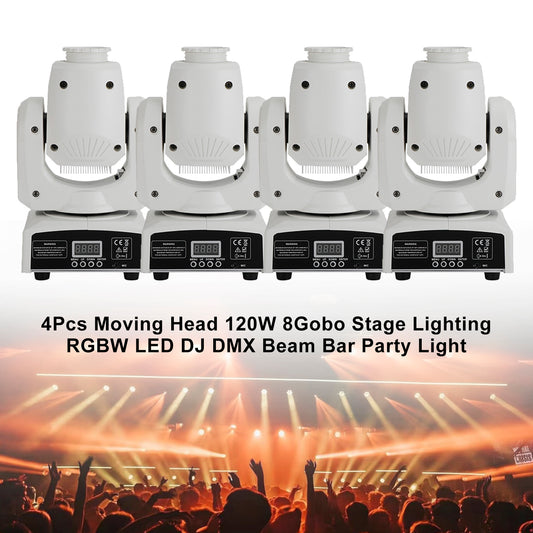 4 Pcs Moving Head 120W 8Gobo Stage Lighting RGBW LED DJ DMX Beam Bar Party Light