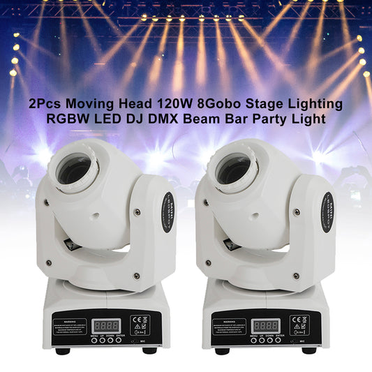 2Pcs Moving Head 120W 8Gobo Stage Lighting RGBW LED DJ DMX Beam Bar Party Light