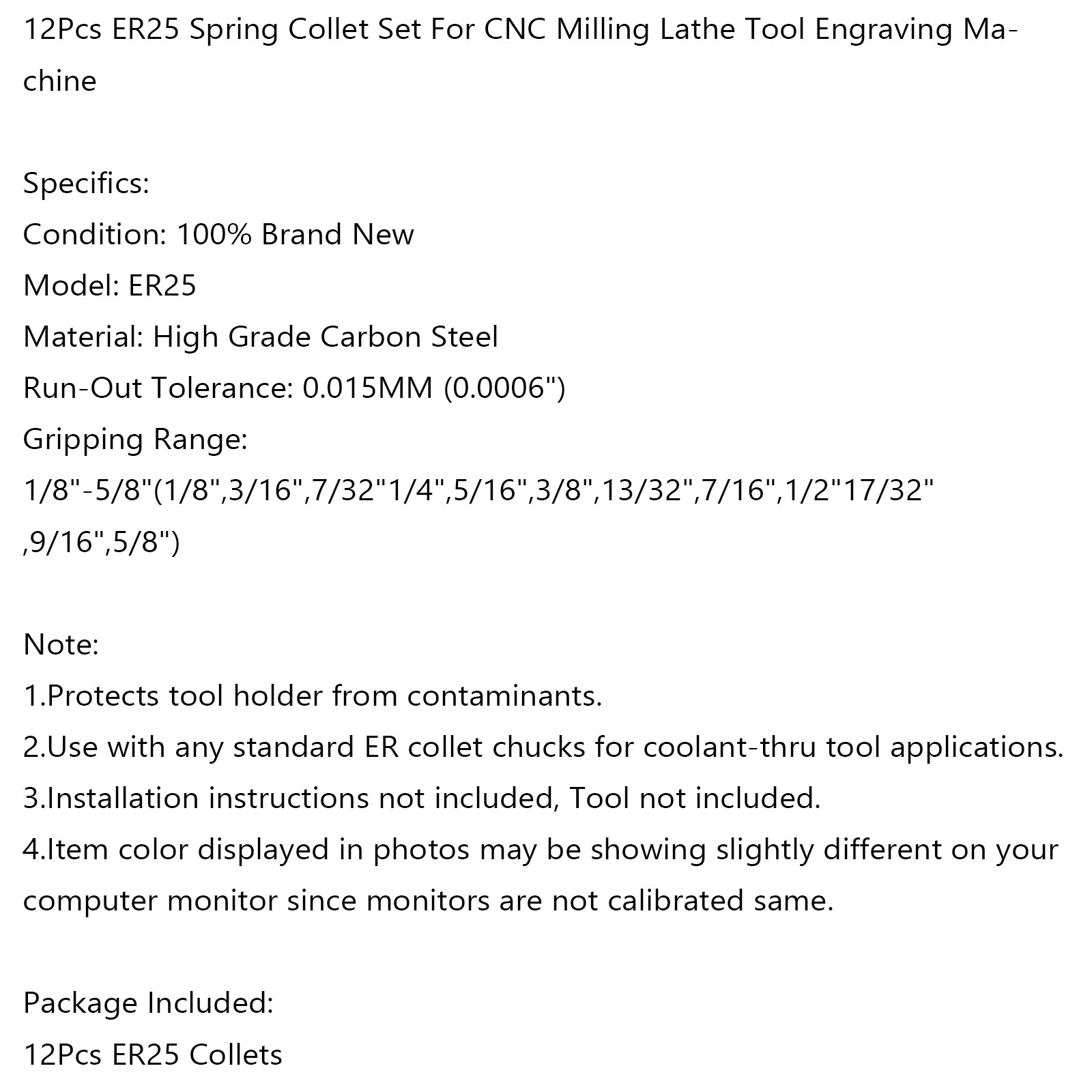 12Pcs ER25 Spring Collet Set For CNC Milling Lathe Tool Engraving Machine