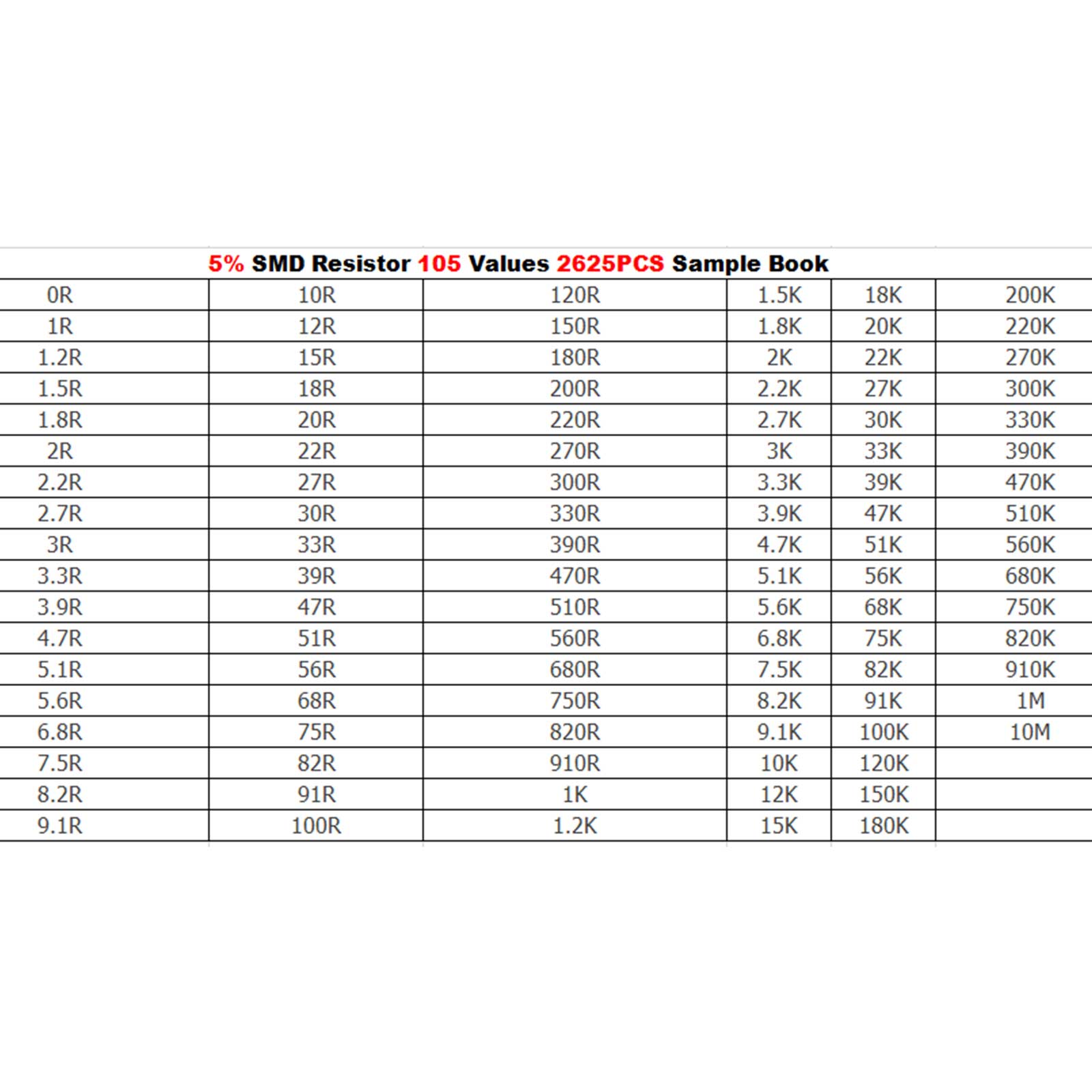 Quantity: 2625PCS(105 values, 25pcs/value)