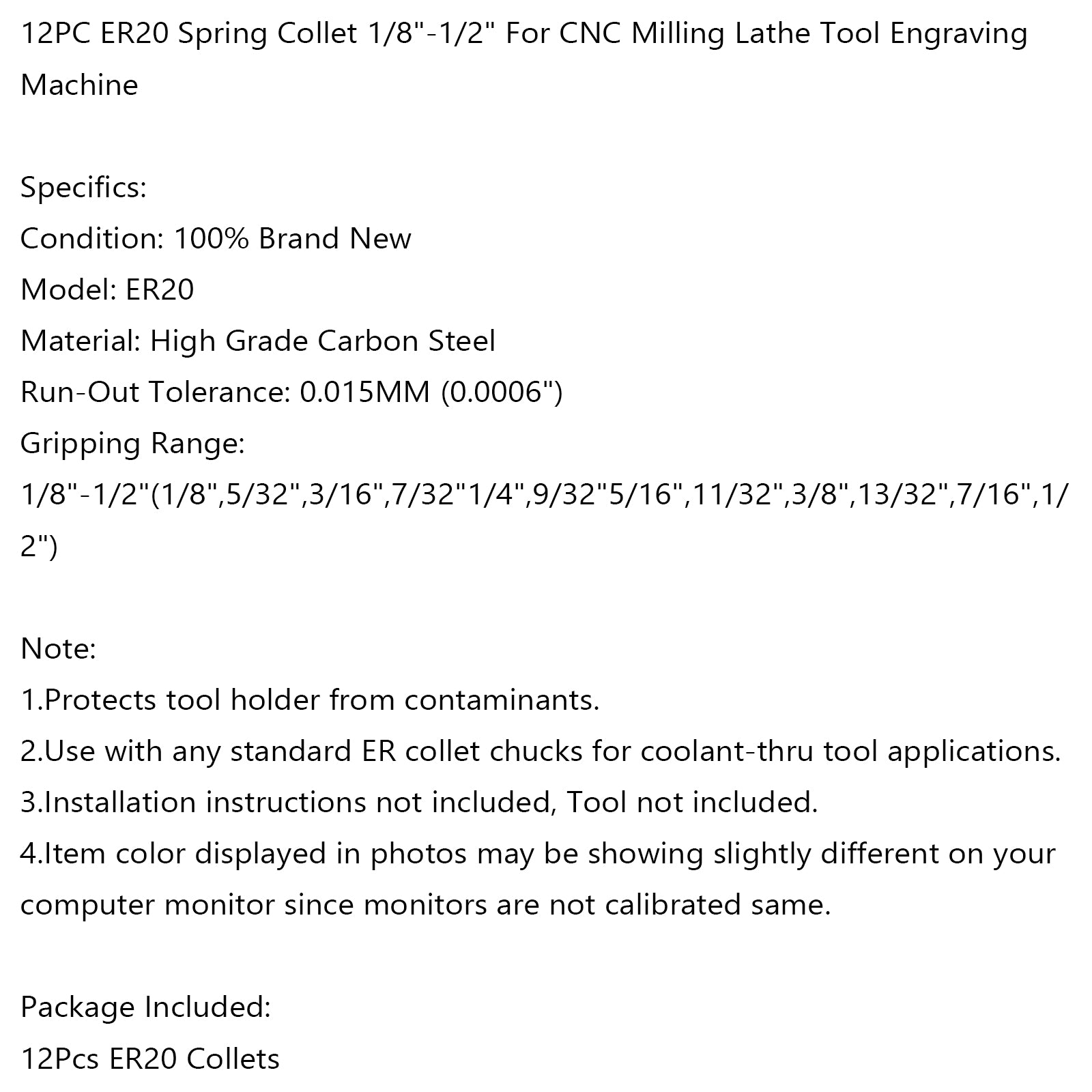 12PC ER20 Spring Collet 1/8"-1/2" For CNC Milling Lathe Tool Engraving Machine