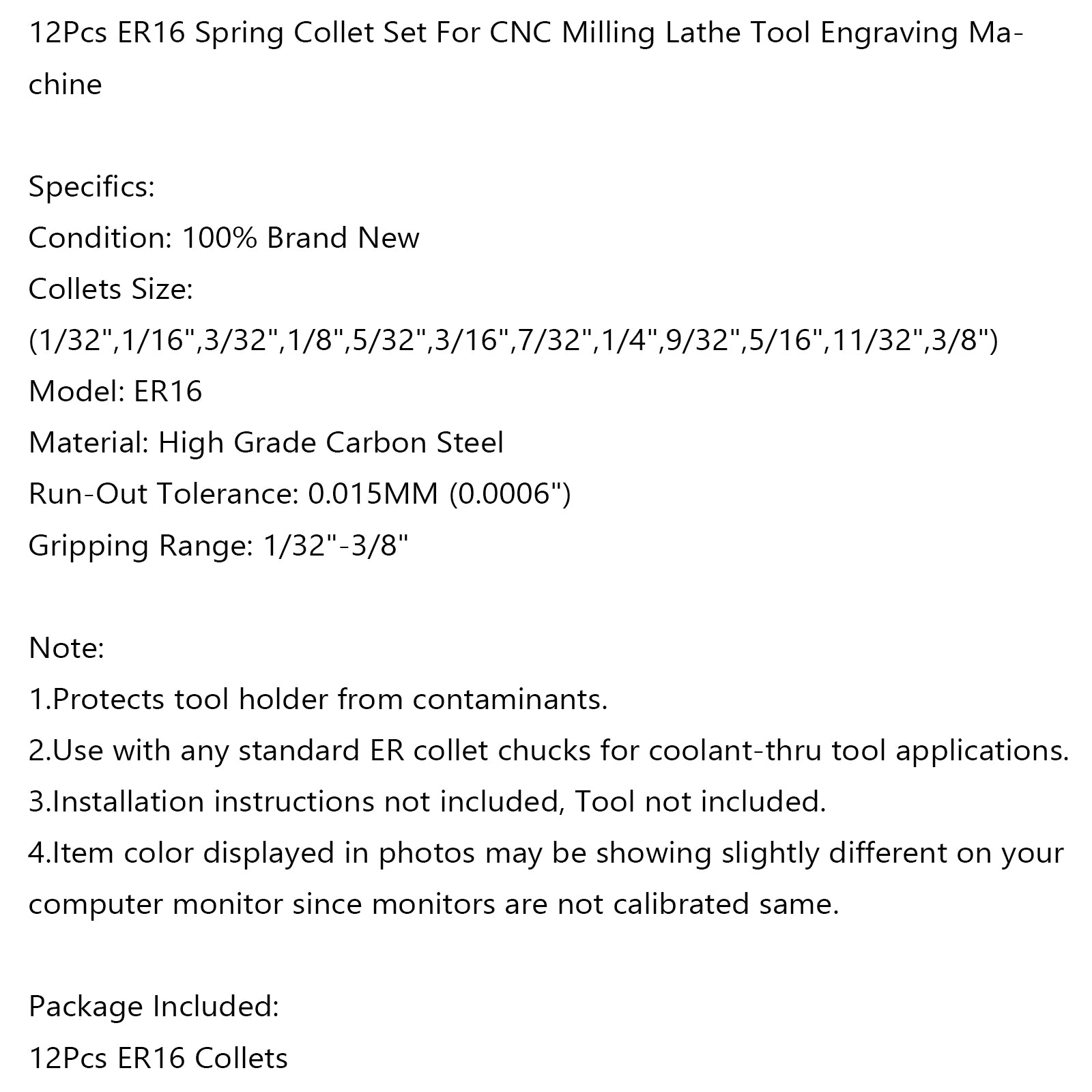 12Pcs ER16 Spring Collet Set For CNC Milling Lathe Tool Engraving Machine Steel