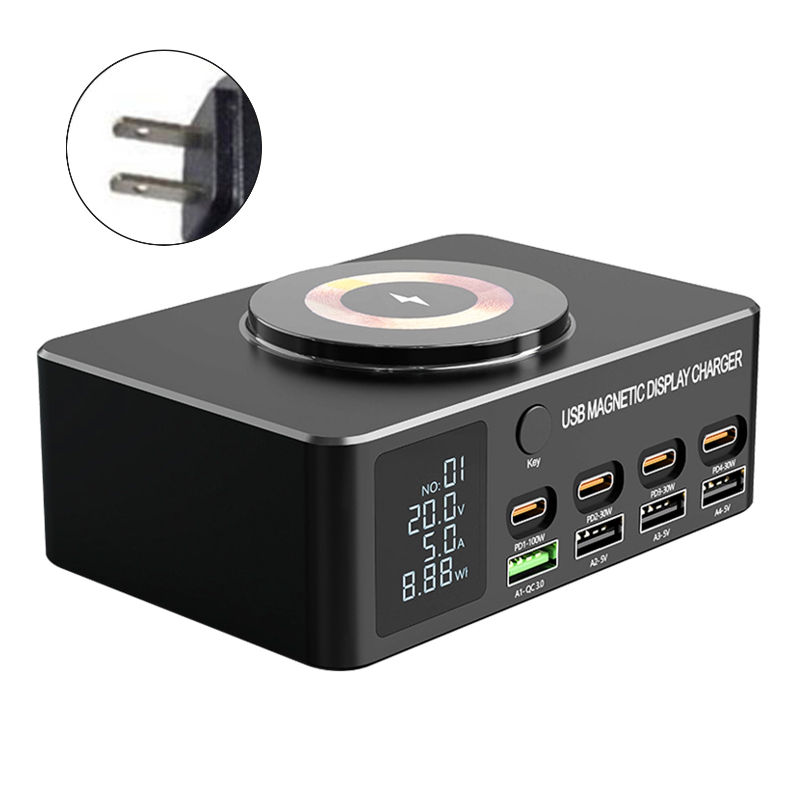 140W Fast Charging Charger Intelligent Digital Display PD100W Mobile Phone Notebook Magnetic Wireless Charging Multi-Port USB Charger US Plug