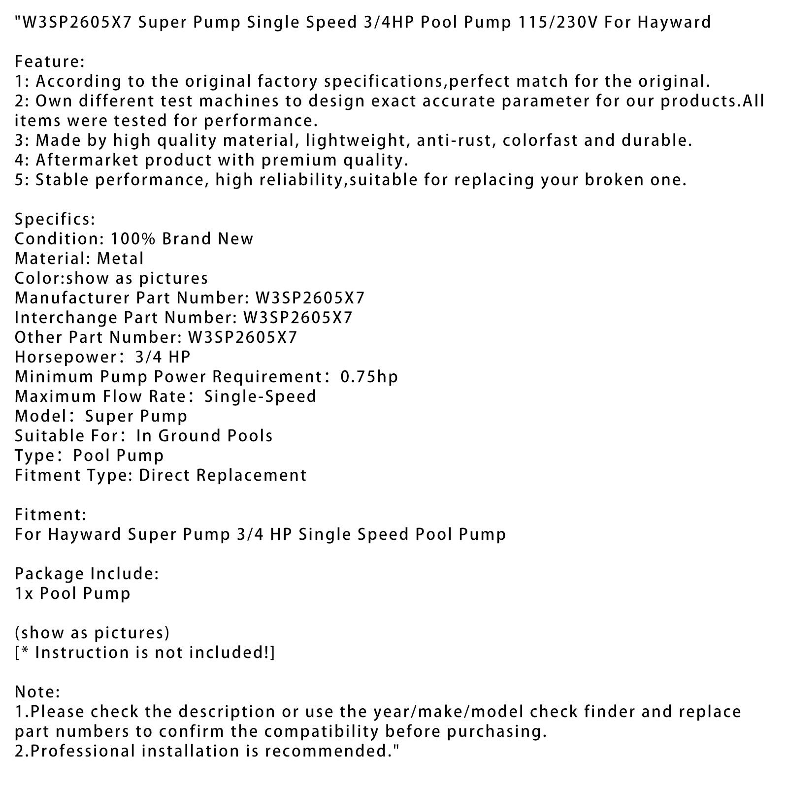 W3SP2605X7 Super Pump Single Speed 3/4HP Pool Pump 115/230V for Hayward π¦π