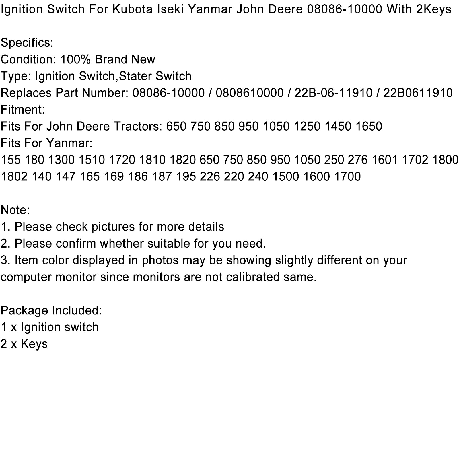 08086-10000 John Deere Kubota Yanmar Iseki Ignition Switch W/2 Keys