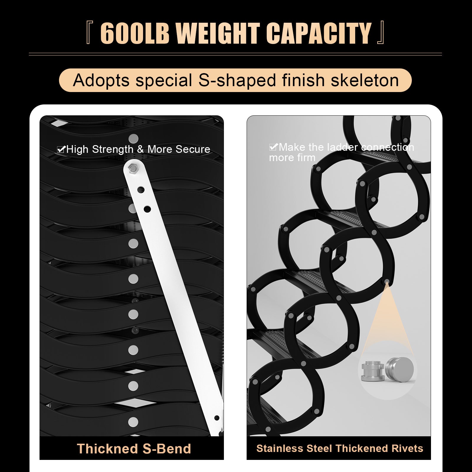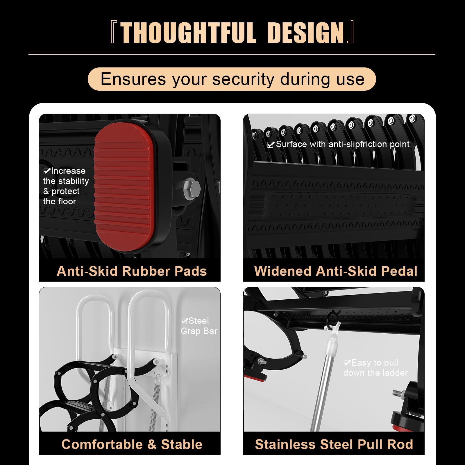 12-Step Folding Attic Ladder for 27.6" x 23.6" Wall Opening, 600 lbs Capacity Pull-Down Loft Stairs, up to 9.84ft Ceiling Height (Black)
