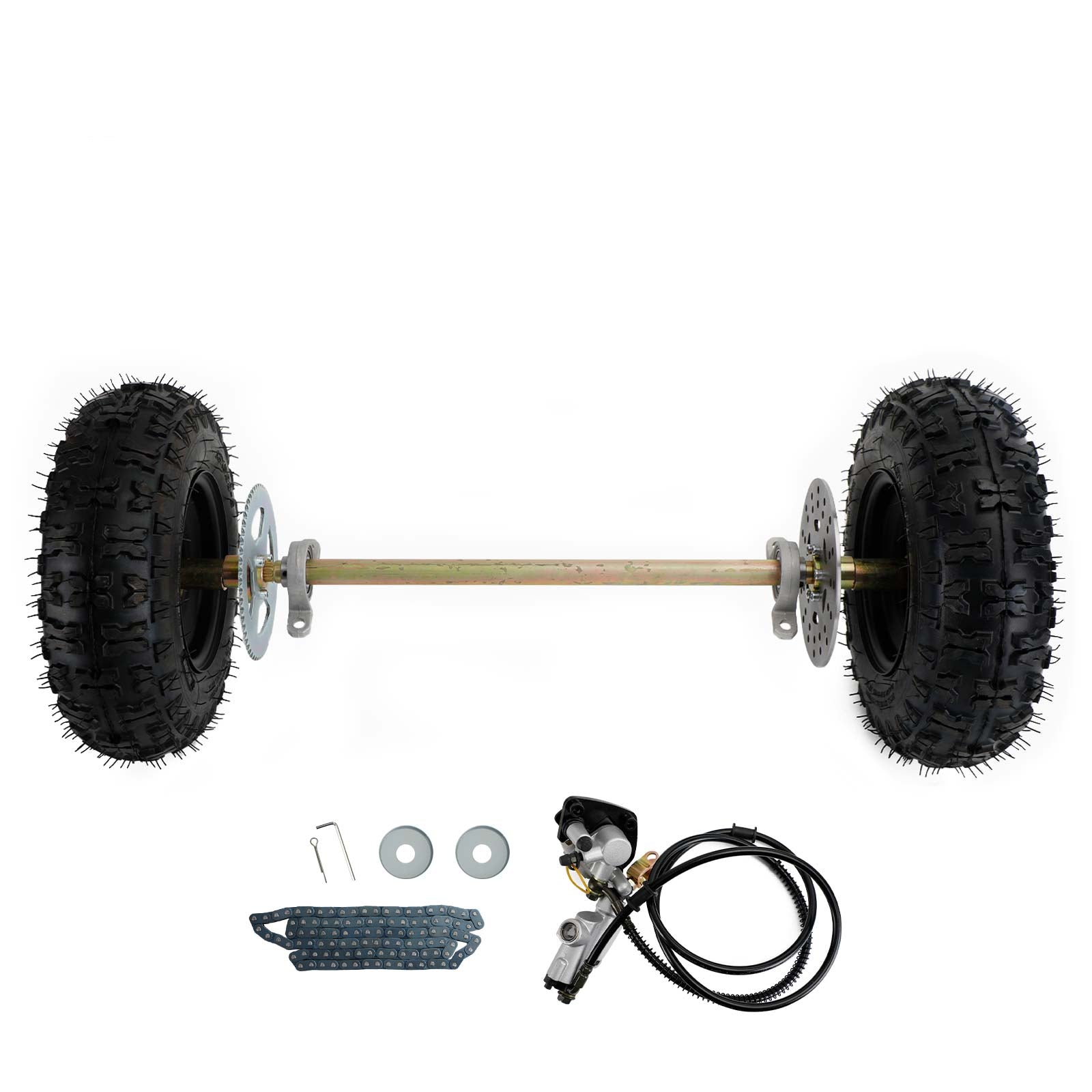 πŸ“¦ Package Includes: 1x Rear Axle Kit, 1x Brake Assembly, 1x Pair of Pillow Blocks, 1x T8F 58T Chain, 1x Pair of 6" Tires