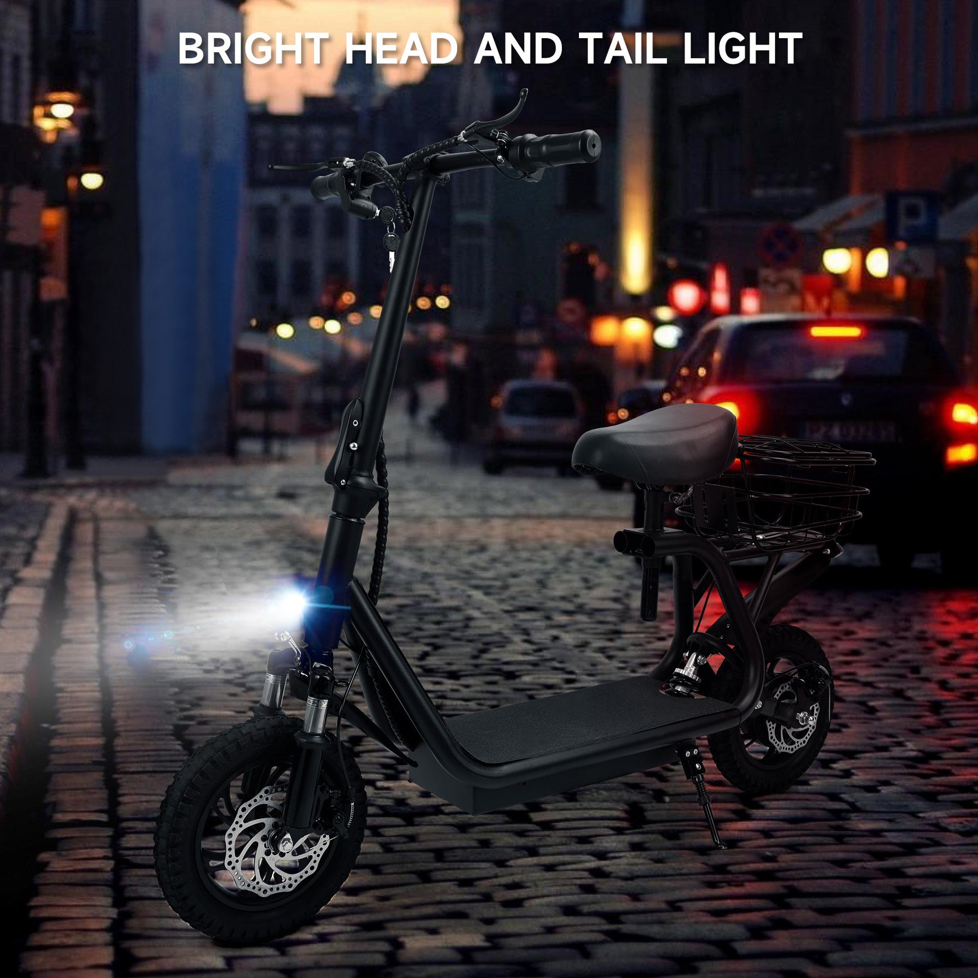 The scooter has a basket, which provides convenience for your usual commuting and ?quick trips, and the wide pedals increase the comfort of commuting