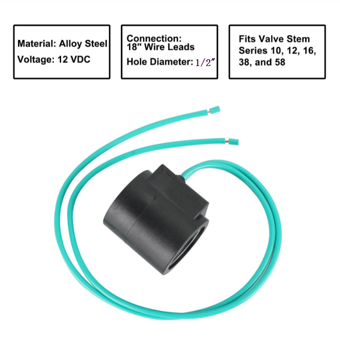 6352012 12V Solenoid Valve Coil With Wire Leads 10 12 16 38 58 Series