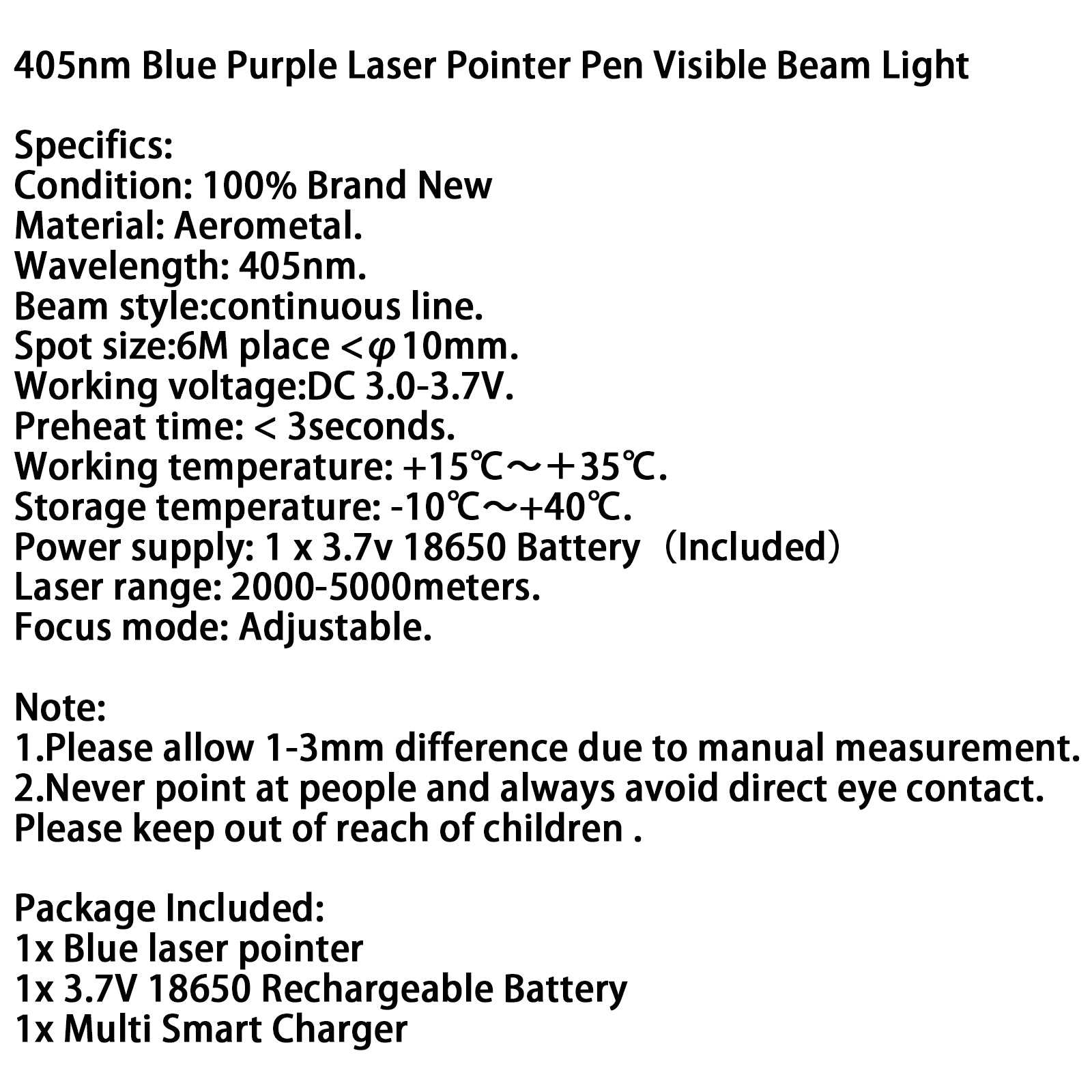 405nm 5mW Rechargeable Blue-Violet Laser Pointer Kit with 18650 Battery & Charger, High Power Pen for Presentations