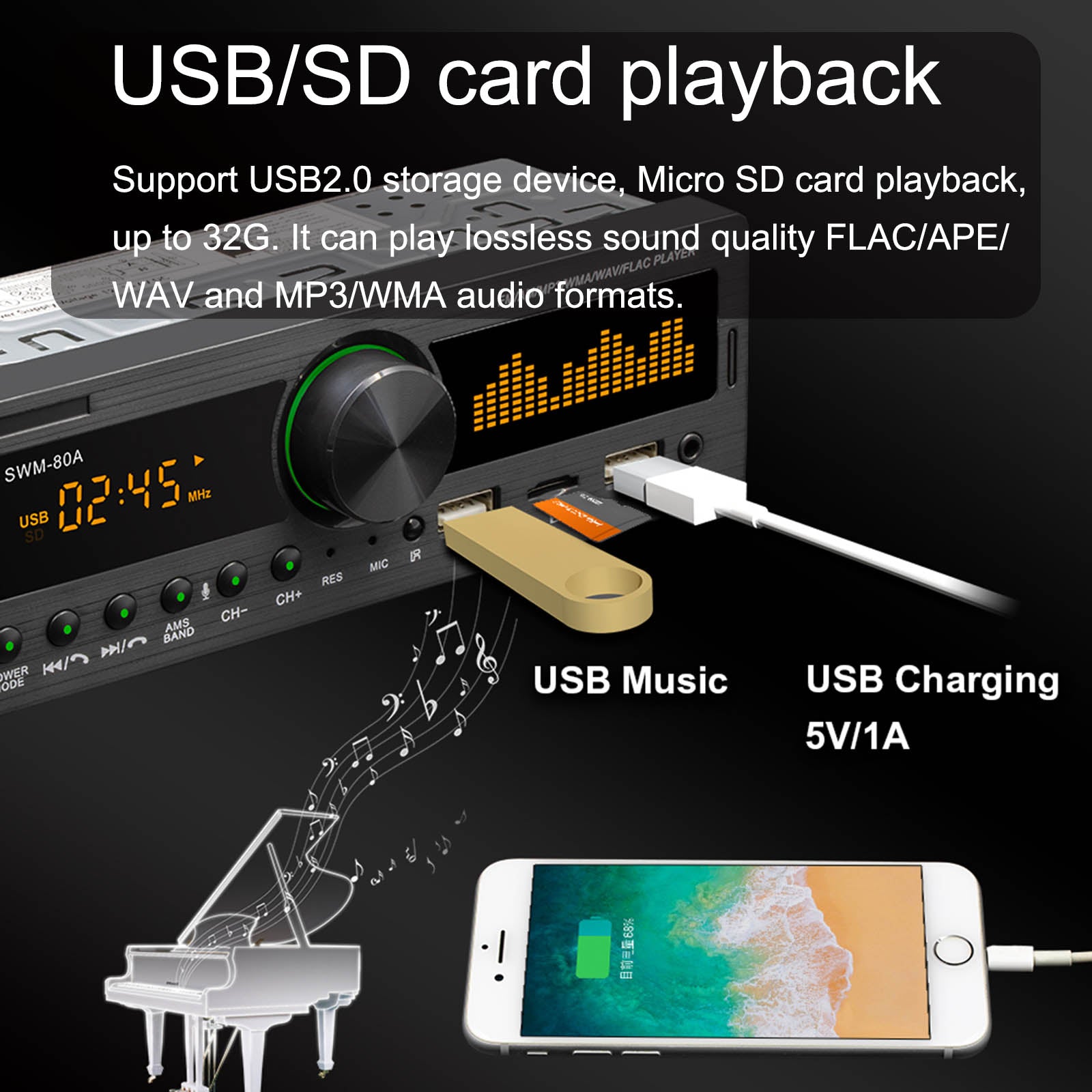 5.Support vast USB/SD storage equipment,and you can download the songs you like into the storage equipment to play,which is very convenient(I have tested in person that memory card with 32GB storage can be played in a flash) Support the charging of all kinds of digital products with USB interfaces(Only support 5V charging)