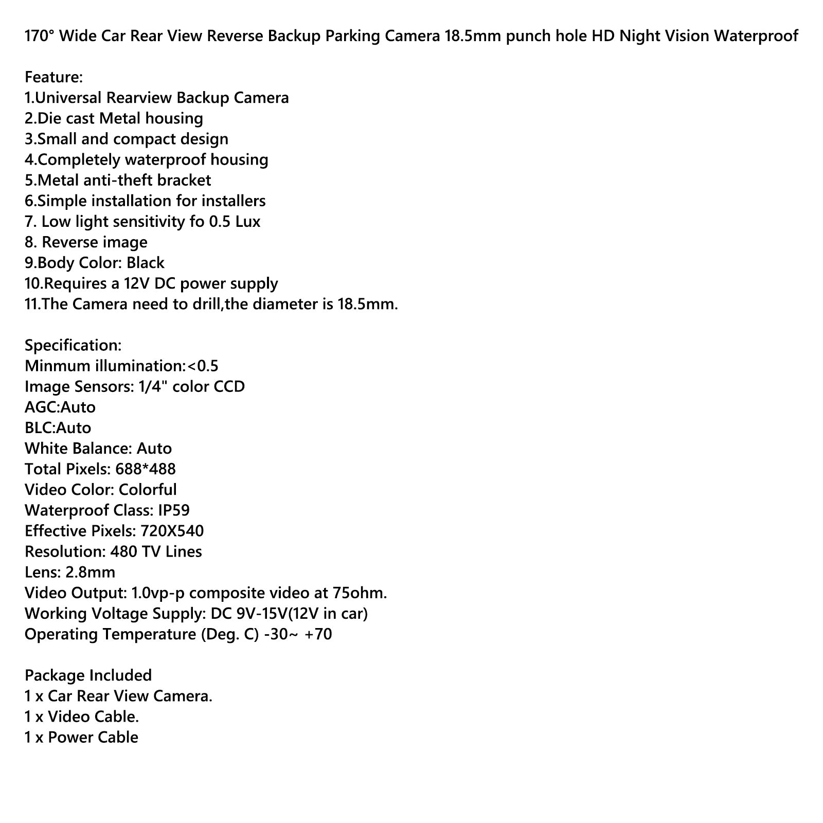 170¡ã Wide Car Rear View Reverse Backup Parking Camera 18.5mm punch hole HD Night Vision Waterproof