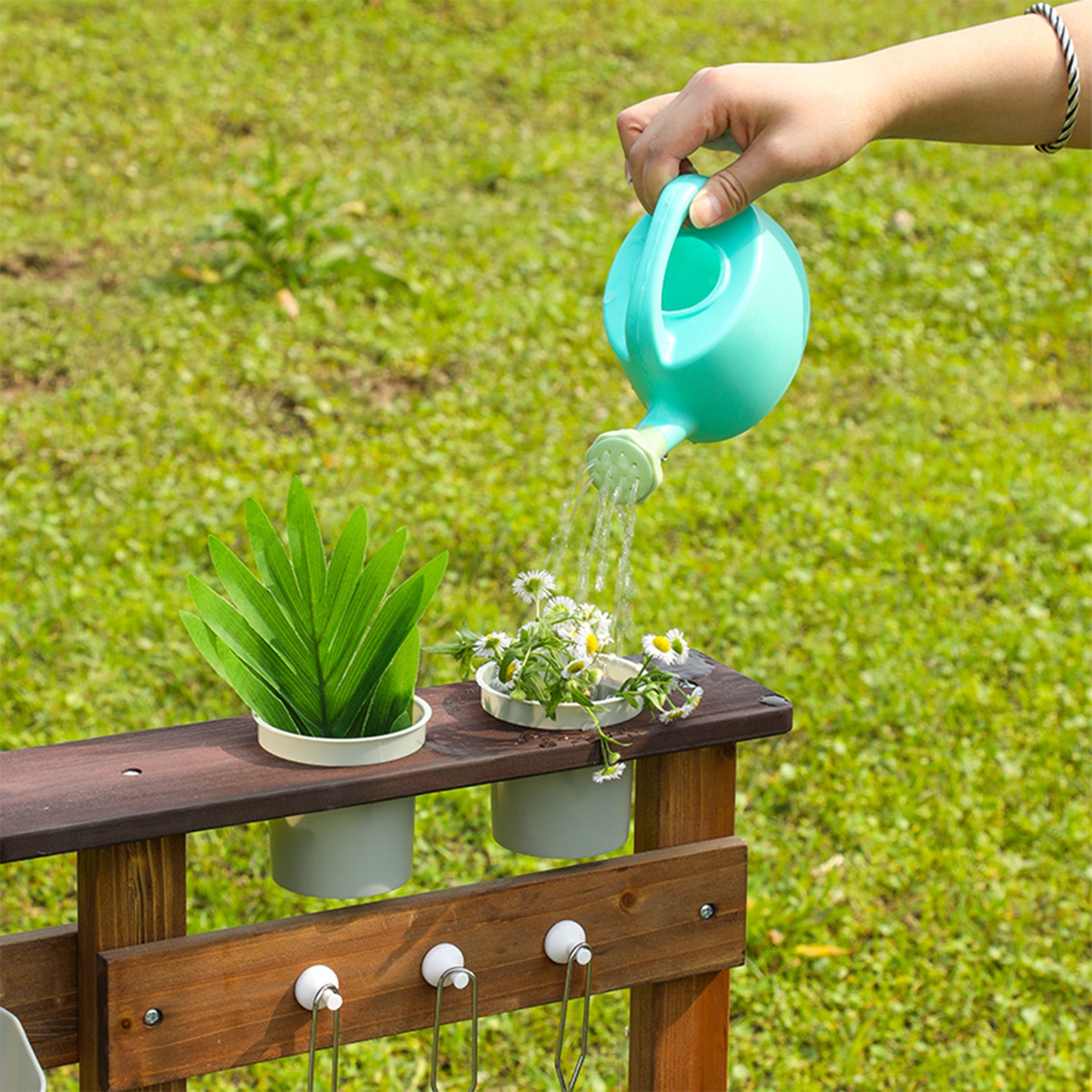 A durable and eco-friendly wooden kitchen set made from hard pine wood, designed for outdoor play. Perfect for water play, mud play, sand play, painting, cooking, and even gardening! It provides children with endless opportunities to learn, play, and grow their imagination. Kids can practice cooking and gardening while also improving motor skills and creativity.