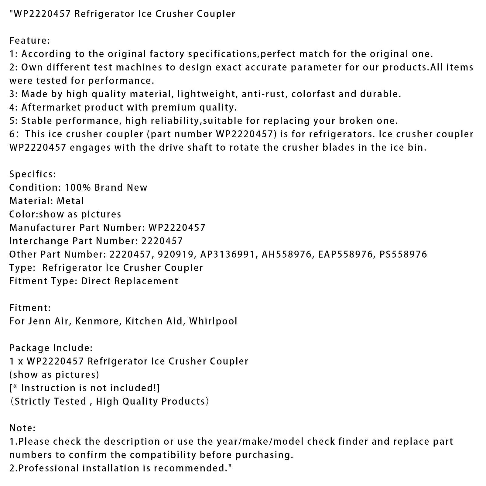 WP2220457 Refrigerator Ice Crusher Coupler Replacement Part
