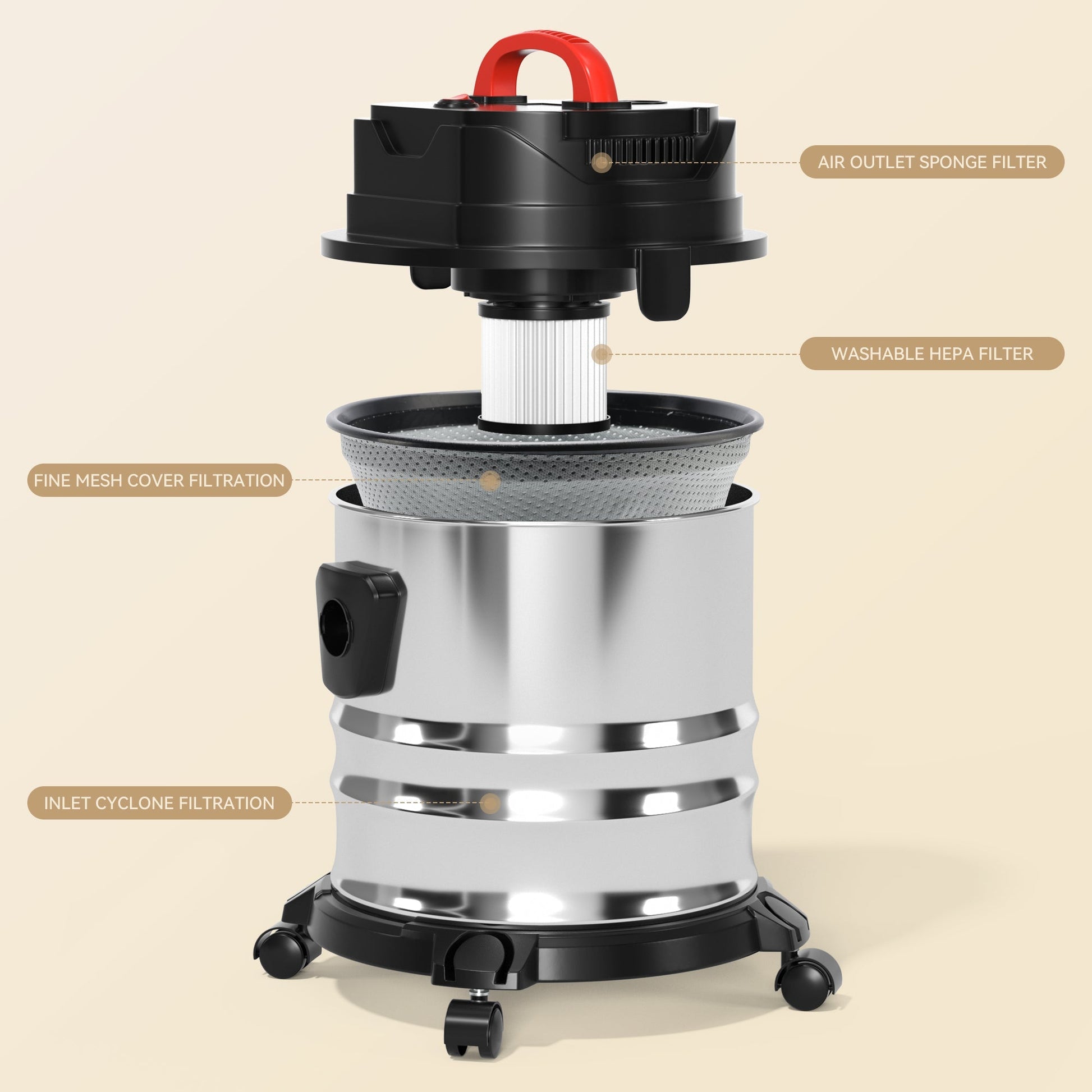 18L Ash Vacuum Cleaner, Powerful 1800W Wet/Dry Shop Vac with Blower Function for Fireplaces, BBQ & Pellet Stoves