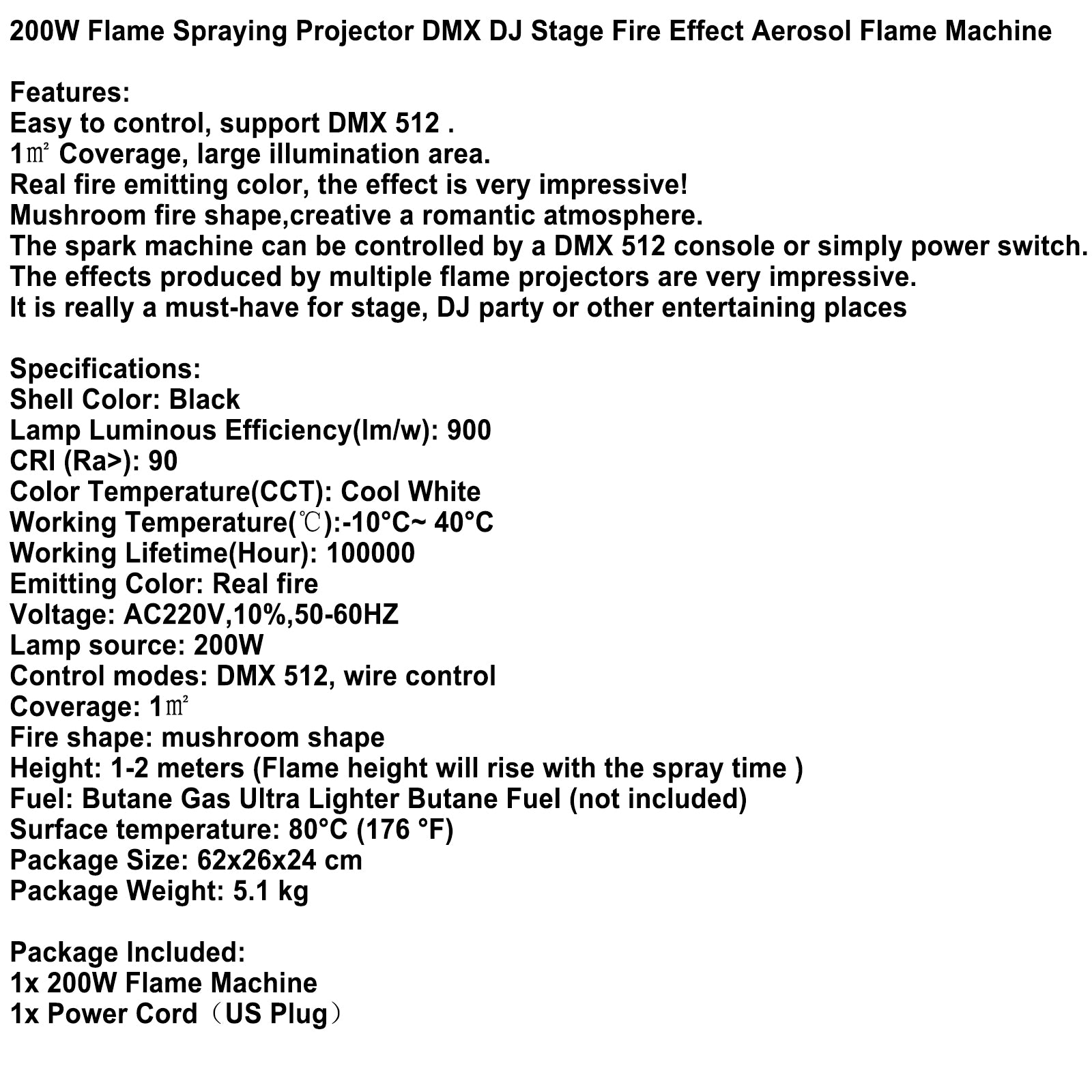 Includes: 1× 200W Flame Machine, 1× US Power Cord