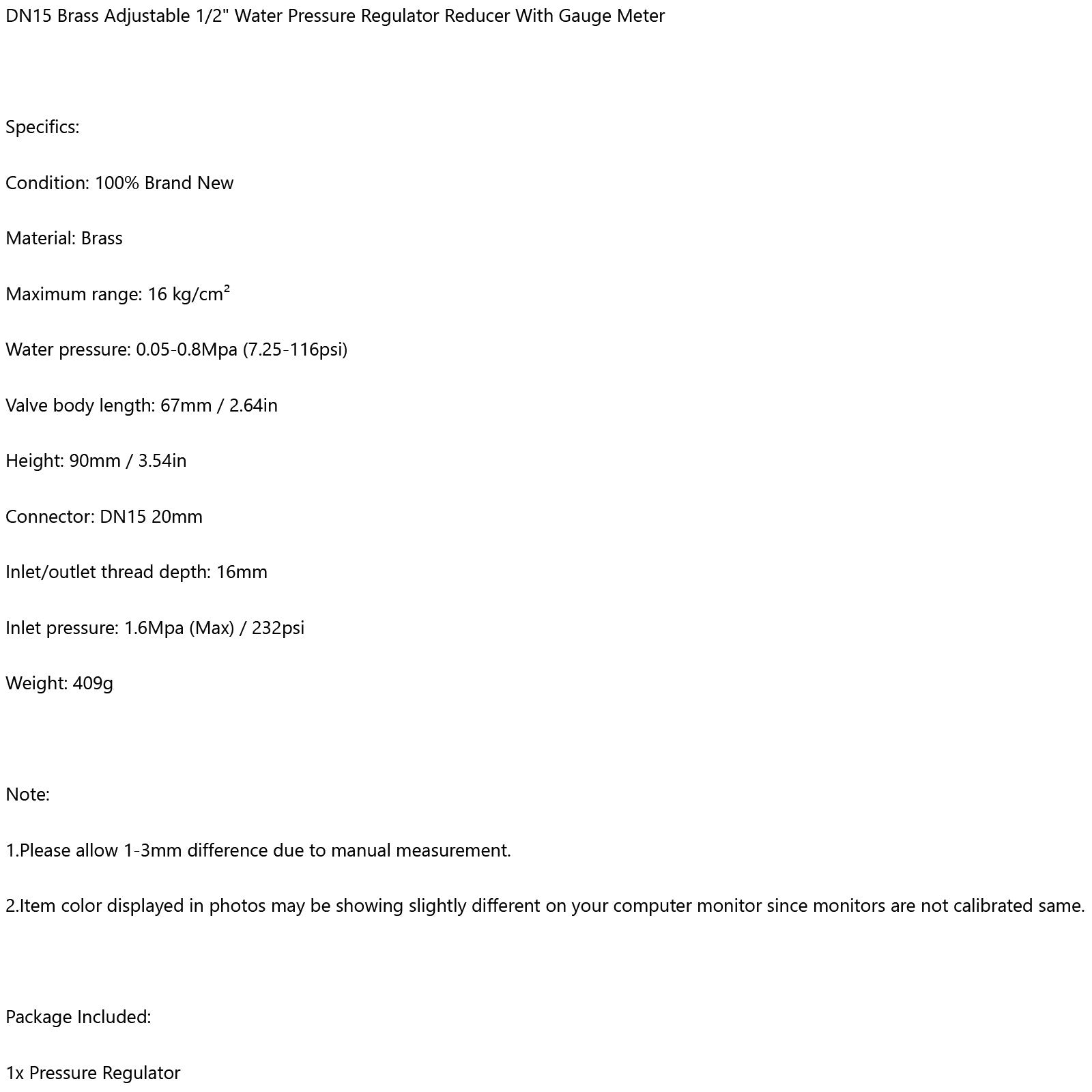 DN15 Brass Adjustable 1/2 Water Pressure Regulator Reducer With Gauge Meter