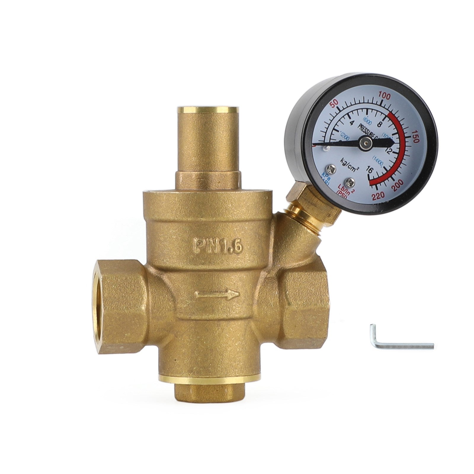DN15 Brass Adjustable 1/2'' Water Pressure Regulator Reducer With Gauge Meter