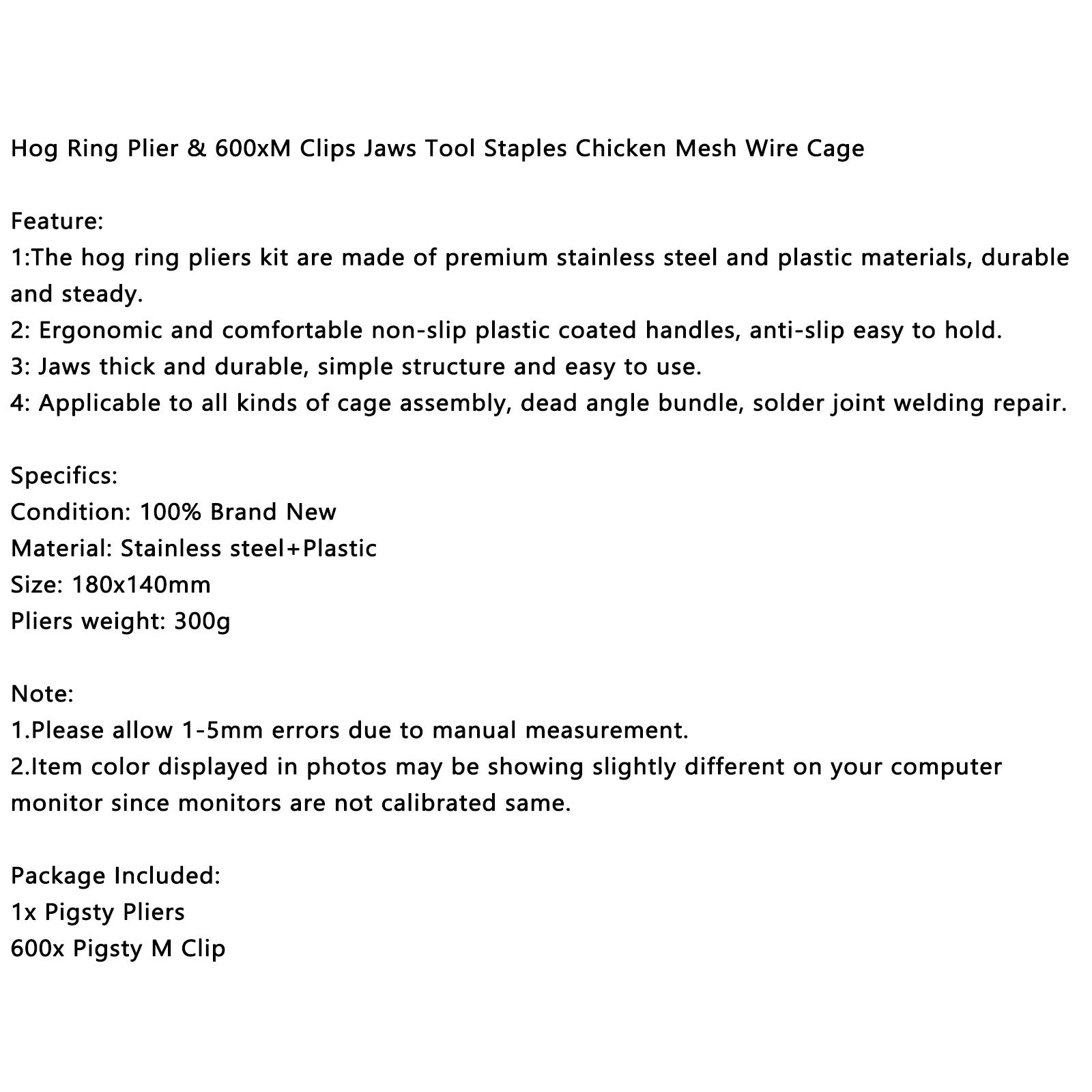 Hog Ring Plier & 600xM Clips Jaws Tool Staples Chicken Mesh Wire Cage
