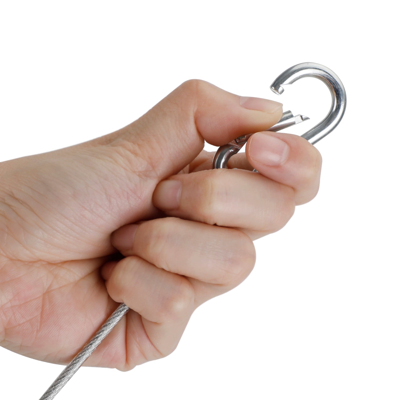 【Easy to Use】: Comes with hook, safety rope is very quick and easy to attach & remove without any tools. Heavy duty locking design to provide reliable support, it is popular and recommended for lamps fall prevention and bulky item securing such as luggage, motorcycles, gate.