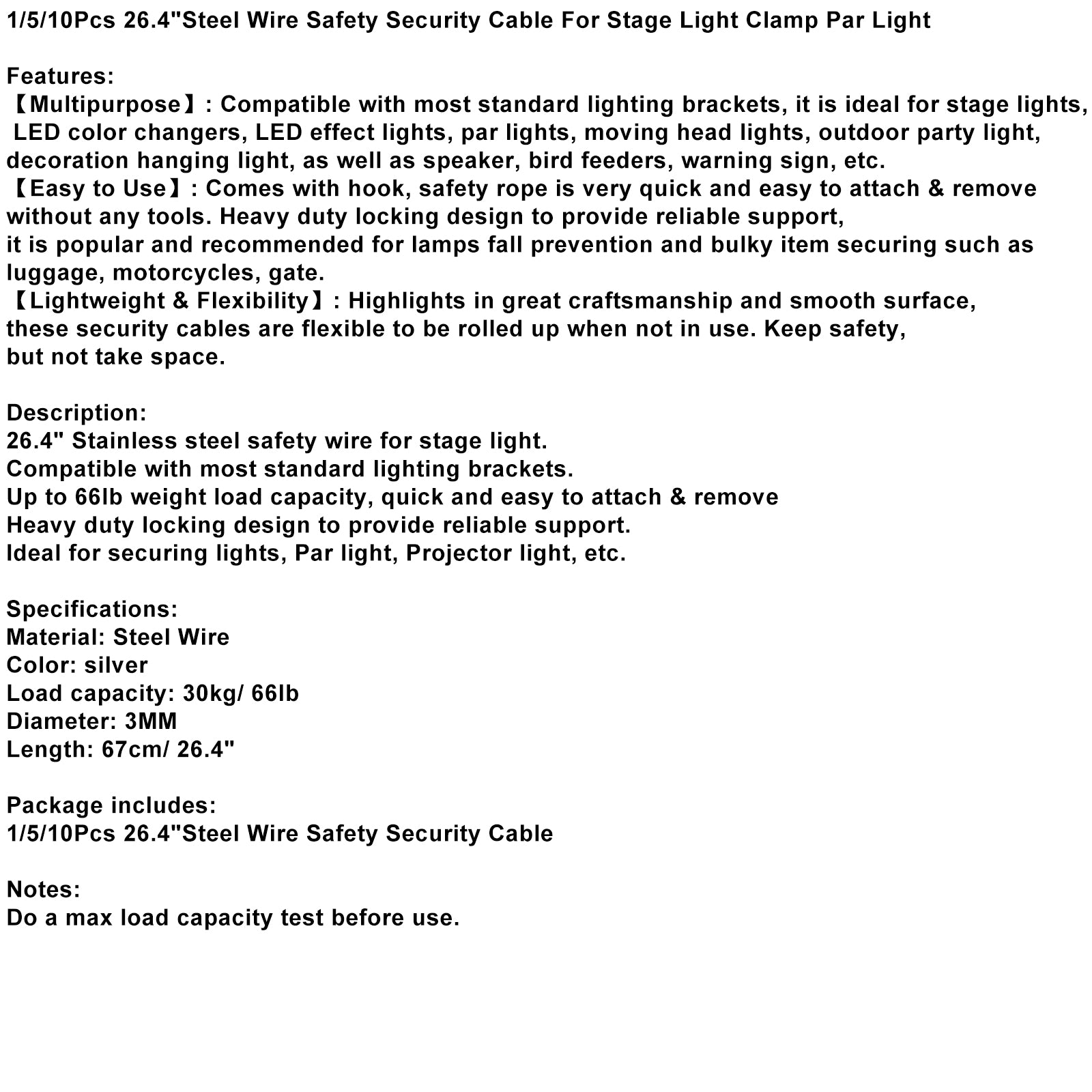 1/5/10Pcs 26.4"Steel Wire Safety Security Cable For Stage Light Clamp Par Light