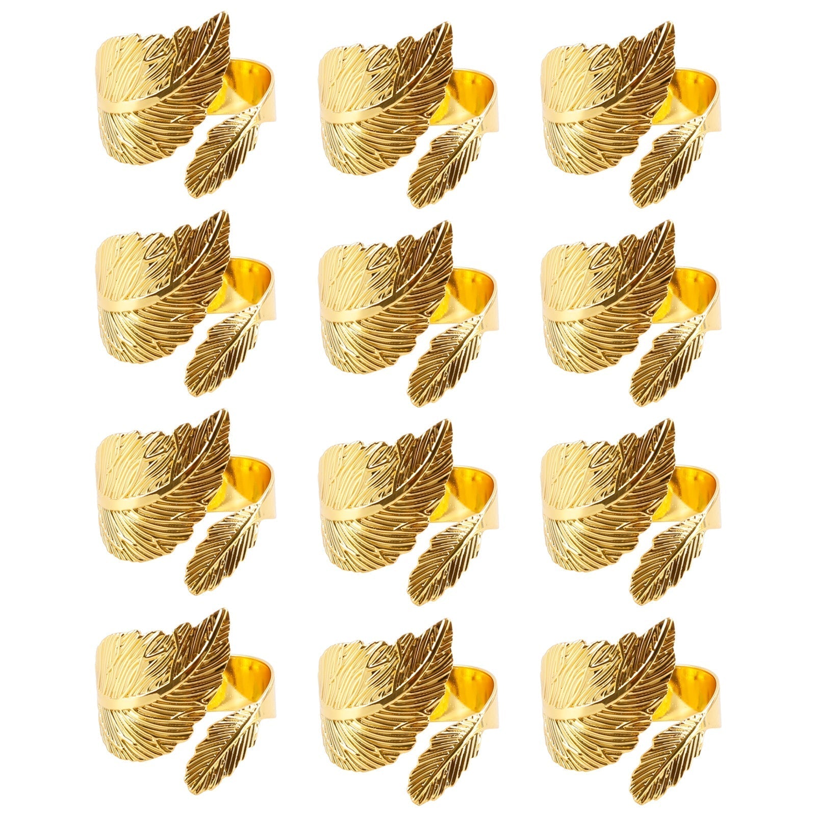 12PCS Napkin Rings Leaf Napkin Holder Adornmen Alloy Golden