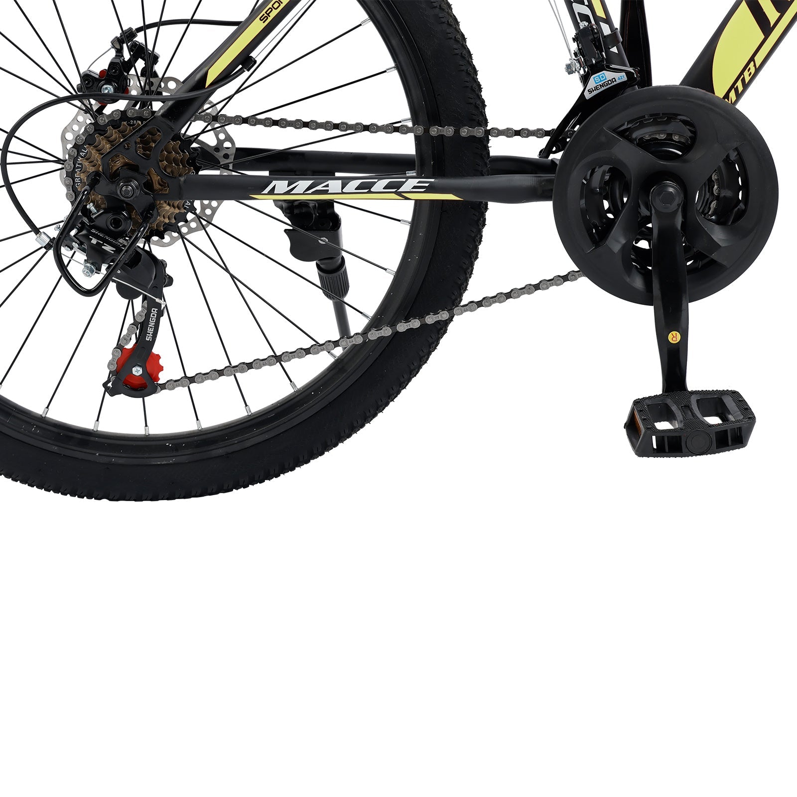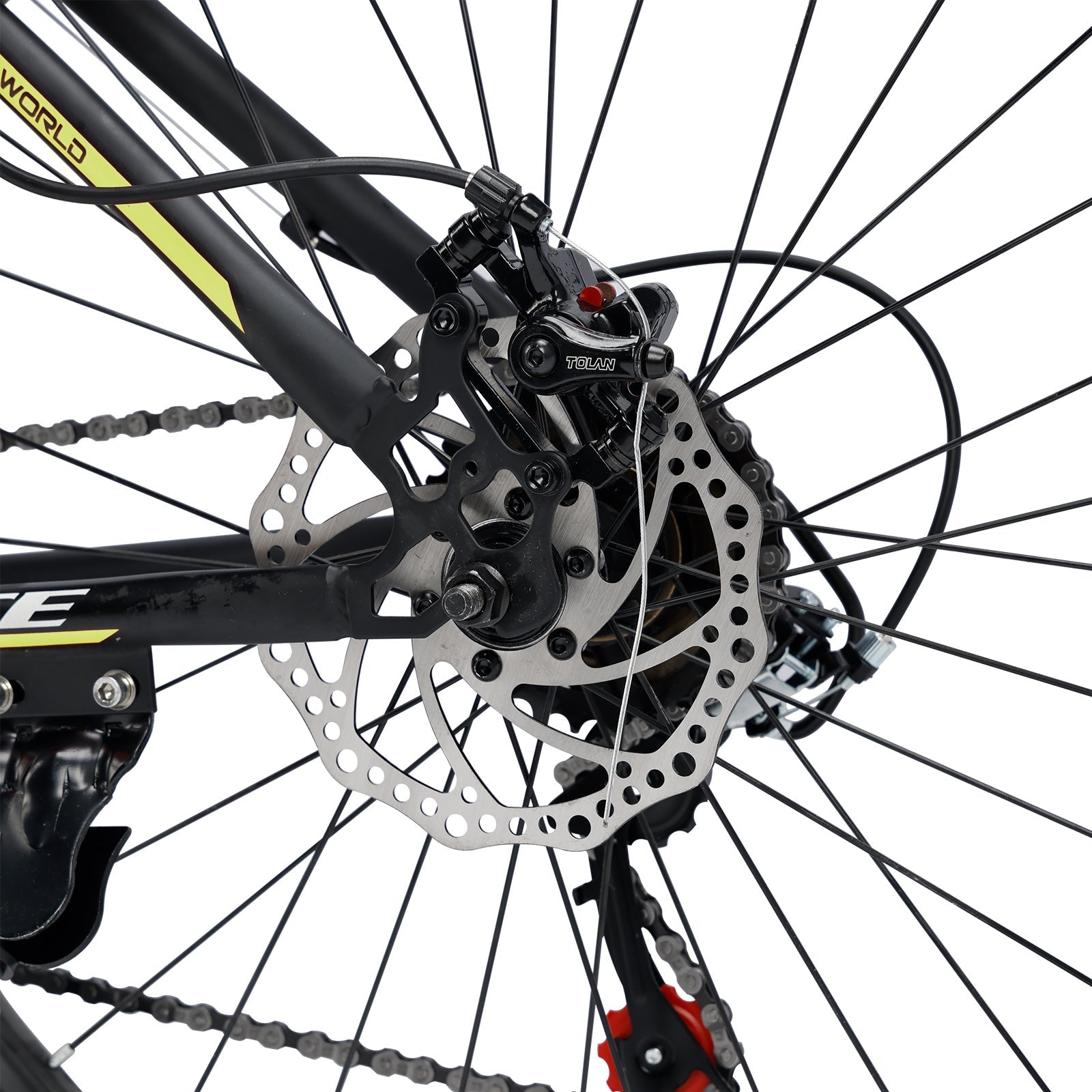 Built for tough terrains, the bike features a sealed 3S center shaft, a 110 variable speed chain, and lightweight aluminum alloy rims for durability and smooth operation. The high-carbon steel frame and disc brake hub ensure long-lasting performance, making it ideal for both novice and experienced riders.