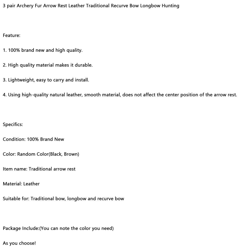 3 pair Archery Fur Arrow Rest Leather Traditional Recurve Bow Longbow Hunting