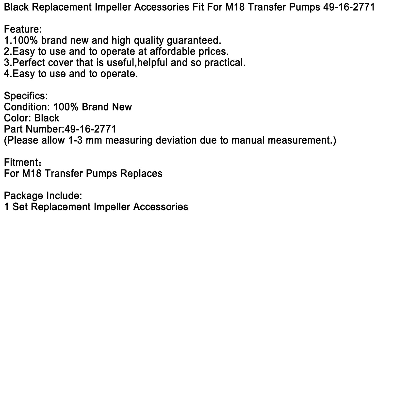 Black Replacement Impeller Accessories Fit For M18 Transfer Pumps 49-16-2771