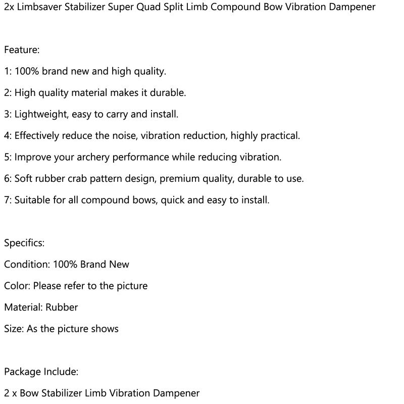 2x Limbsaver Stabilizer Super Quad Split Limb Compound Bow Vibration Dampener