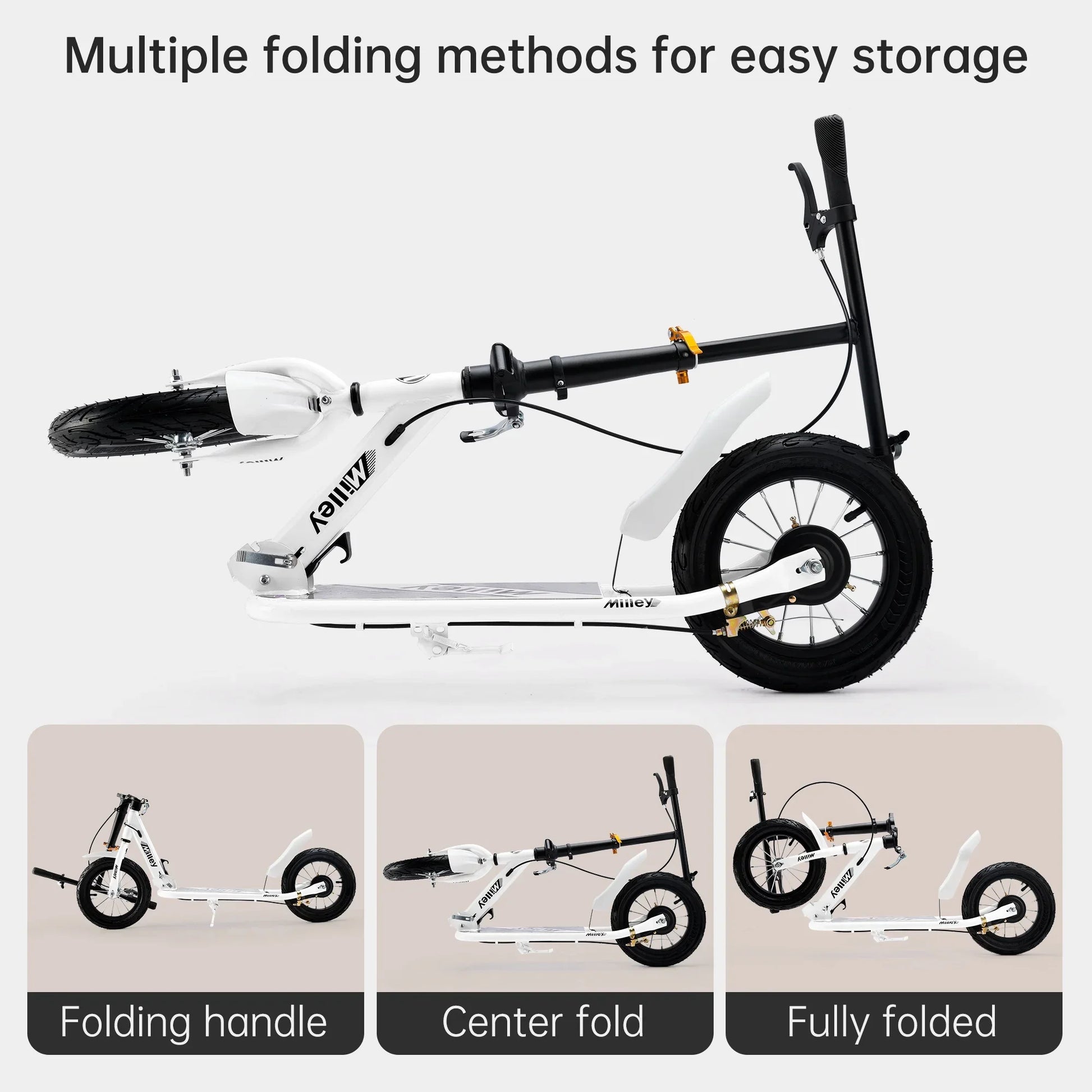 Shock-Absorbing 12-Inch Pneumatic Tires �Glide effortlessly with large, air-filled rubber tires that absorb shocks for a smooth, comfortable ride on any surface, perfect for urban commutes or leisurely rides.